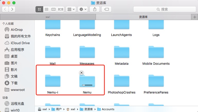 文件夹目录为/Users/xwl/Library/Nemu。