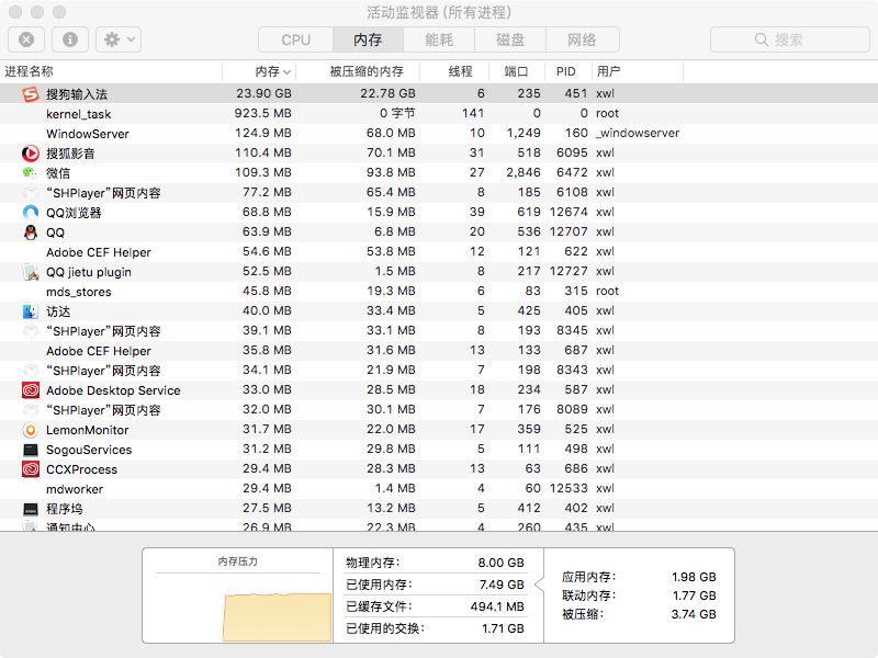 搜狗输入法占内存巨大,mac电脑系统卡死