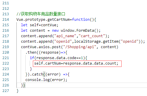 3..vue文件里可以直接调用this.getCartNum();,通过this.$root.cartNum就可以获取这个全局变量的值了,这样写起来是挺方便的,不过有什么缺点的话暂时不清楚哈,原谅我也是个vue新手哈。