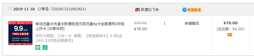 第二次网购,直接选择了上一家提到的物联网卡,换成天猫店了,现在回头看商家的商品还是下架了哈,连追加评论的机会都没有哈,这回选择的比较贵一点哈。