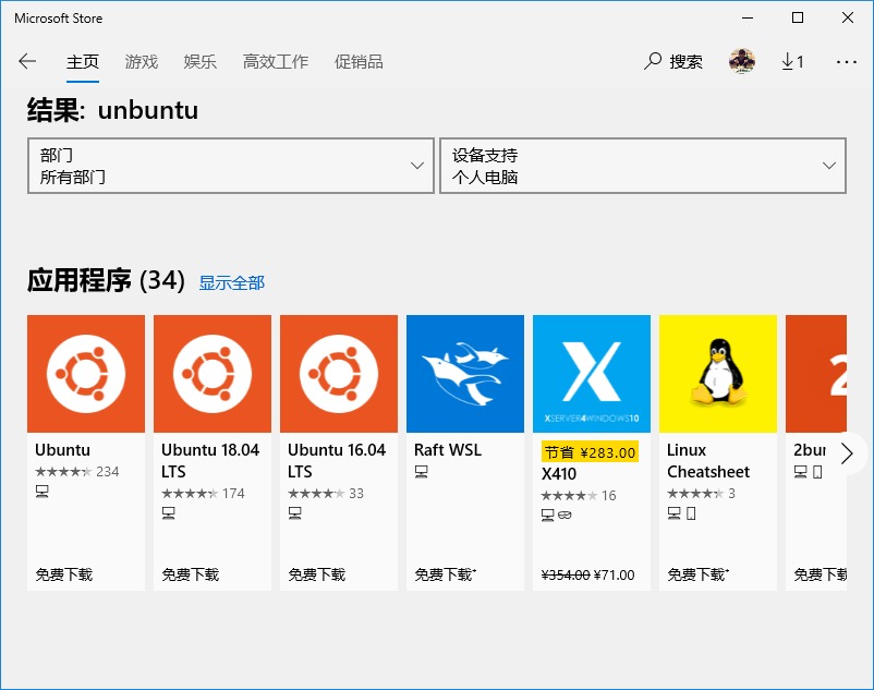 microsoft store应用商店下面找到ubuntu 18.04 LTS安装,这个叫windows子系统,相对大家用虚拟机软件,这个效率还是蛮快的,也不用重启系统切换操作系统,可以说非常完美,不过毕竟是linux系统,不支持ASP跟ASPX。